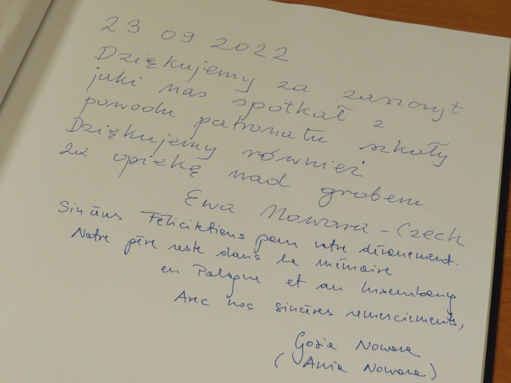 W dniu 23 września w nasze progi zawitali niezwykli goście. Swoja obecnością zaszczyciła nas najbliższa rodzina patrona naszej szkoły – Józefa Nowary. Było to spotkanie pełne wspomnień i wzruszeń. Daleka droga z Luksemburga nie stanowiła przeszkody, by porozmawiać o sprawach, które kształtują życie człowieka – o wartościach, zasadach i ideałach. To o nich powinniśmy pamiętać, wiedząc, że stanowią fundament lepszej, mądrzejszej i piękniejszej rzeczywistości. Nie tylko w wydaniu sportowym…